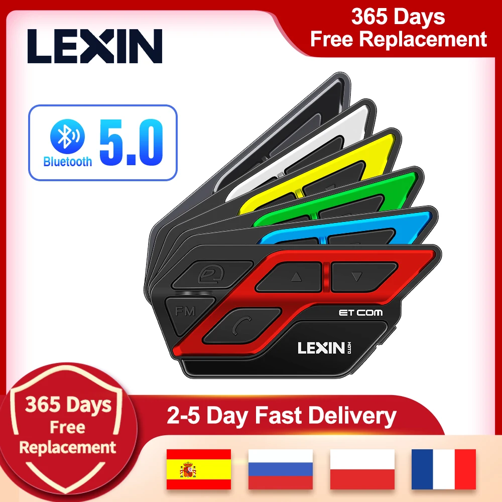 Piezas y accesorios de motocicletaBuen valor LEXIN-Intercomunicador con bluetooth 5,0 para casco, auriculares resistentes al agua de 1200m para 2 conductores de 6 colores, modelo LEXIN ET COM, 1 unidad Vy8KZOjoy